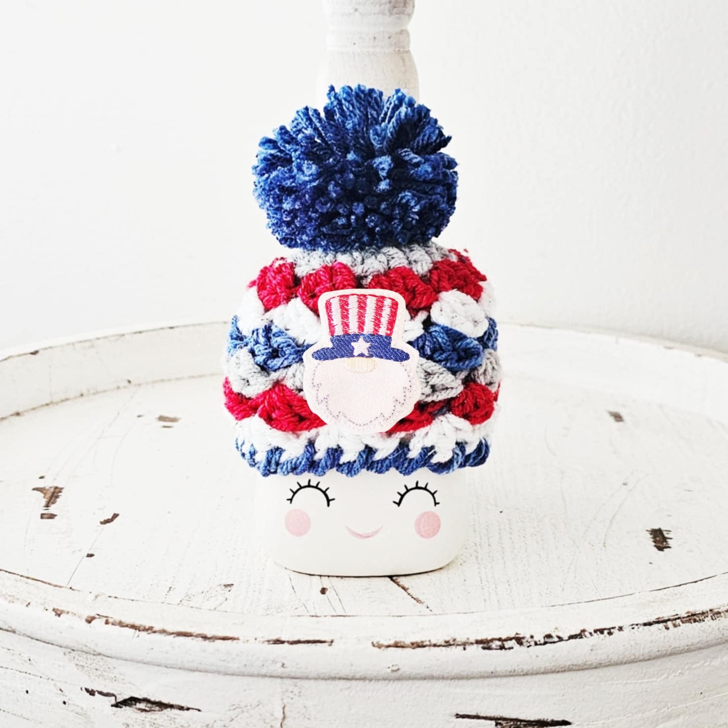 4th Of July Uncle Sam Gnome Marshmallow Mug Hat Patriotic Farmhouse Kitchen Tiered Tray Decor Crochet Hat