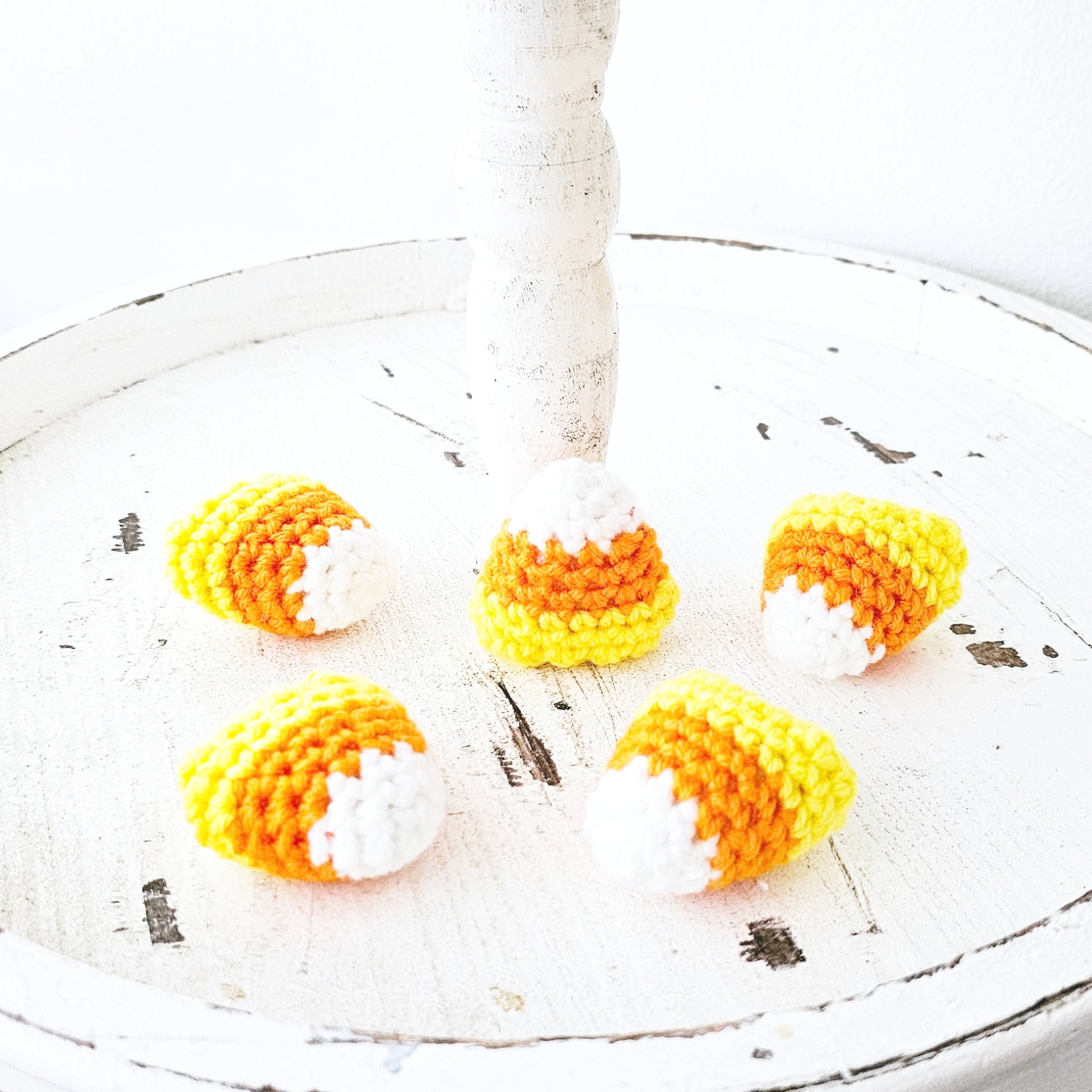 Crochet Candy Corn Pieces Bowl Filler Halloween Tiered Tray Farmhouse Decor